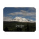 Ein riesiger Berggipfel erhebt sich über einen riesigen Wald mit dunklen immergrünen Bäumen. Im blauen Himmel schweben Wolken über dem Berg und vor dem Gipfel. Dieser Berg ist der Berg Adams, auch bekannt als Pahto oder Klickitat. Es ist ein ruhender Vulkan im Cascade Mountains des Washingtoner Staat. Bringen Sie diese majestätische Landschaft vom pazifischen Nordwesten zu Ihrer Zuhause mit diesem Magneten.