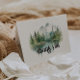 Schöne Gebirgskarte mit Aquarellwald und Bergen.