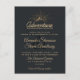 Carte postale rustique avec illustration de couleur or sur un arrière - plan gris-noir. Conçu avec une illustration d'une montagne avec les rayons de soleil brillant vers l'extérieur de derrière. La typographie dit : Aventure explorer la découverte de rêve.