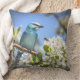 Ein wunderschöner Bluebird aus Mountain, der auf einem blumengeschmückten Ast sitzt, bedeckt dieses wunderschöne, quadratische Kissen. Klicken Sie auf Anpassen, um die Farbe auf der Rückseite zu ändern, wenn Sie möchten.