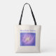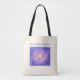 Diese bemerkenswerte 16" x 16" Tasche mit dem Boden, der sich zu 3" und 28" langen schwarzen Baumwollschultergurt öffnet, hat ein schwarzes laminiertes Futter und ist eine großartige Tasche für Shopping Outings. Diese Tasche zeichnet sich durch eine surreale Skizze einer hohen Bergkette in der Nacht aus, mit einem geheimnisvollen Glühen, das von irgendwo in der Mitte ausgeht. Sicher, ein Gesprächsstarter zu sein.