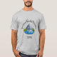 Schriftart Stil, Größe und Farbe können auf Ihre Bedürfnisse angepasst werden. Shirt, Farbe und Stil können ebenfalls geändert werden. Bild von grauem Berg, blauem See und grünen Bäumen.