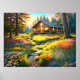 Bright colorful forest meadow with flowers, trees and cabin. Lots of art in my stores. Add this art to other products, add text.
