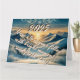 Eine exquisite Winterlandschaft verschmilzt mit einer neuen Jahresbotschaft, perfekt für individuelle Gruß. Die Szene zeichnet sich durch einen dramatischen Sonnenaufgang zwischen schneebedeckten Gipfeln mit zarter Schneeflockdekoration aus, ideal für persönliche oder berufliche Neujahrswünsche