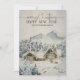 In dieser Winterszene ist eine rustikale Berglodge zu sehen. Es ist von schneebedeckten Pinien umgeben. Sie können Berge im Hintergrund sehen. Fröhliche Weihnachten und glückliches Neues Jahr sind über der Szene in einem trendigen typografischen Pairing geschrieben. Eine Textzeile erlaubt es Ihnen, Ihren Namen oder eine kurze benutzerdefinierte Nachricht hinzuzufügen.