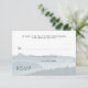 Hochzeitskarten für Hochzeitskappen mit individuellem Text. Fügen Sie eine Zeile ein, um Gäste für eine genaue Anzahl fragen, wenn Sie möchten, oder entfernen Sie sie und schreiben Sie sie, wie Sie möchten. Blau, grau und weiß, mit mickrigen Berglandbildern.