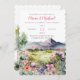 Mountain Thyme Wildflower Wedding Invitation features a beautiful mountain scene with spring and summer colors of green meadows, purple mountains and colorful mountain wildflowers. Front of card has customizable invitation ready for your own wedding information. The Mountain Thyme Wildflower Wedding Invitation coordinates perfectly with the Mountain Thyme Wildflower Wedding RSVP Reply Card with beautiful majestic mountain watercolor scenes. Visit our Mountain Thyme Wildflower Wedding Suite to see all of our coordinated stationery and wedding supplies.