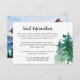 Die Vorderseite der Karte hat zwei große grüne Kiefernbäume. Sie können alle Textdetails bearbeiten. Sie können alle Details hinzufügen, die Sie benötigen, zum Beispiel: Empfang-Informationen, nur für Erwachsene, Website-Adresse, Registrierung, Unterkunft, Kleidercode, Bargeld Bar, etc. Der Begriff "Gastinformation" kann in Empfang, Unterkunft, Details usw. geändert werden. Die Rückseite der Karte ist mit Bergen, Wasser, Kiefern und einem blauen Himmel in Aquarellfarbe gestaltet. Diese Karte passt zu einer Hochzeitskollektion in meinem Geschäft.