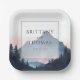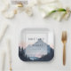 This is a serene and elegant style image featuring a soft watercolor mountain landscape with silhouettes of trees against a pastel sky. The names "Brittany and Thomas" are prominently displayed in an elegant font, along with the date "June 8, 2026," creating a romantic and tranquil atmosphere perfect for a wedding invitation. The gentle blend of blues and pinks evokes feelings of calmness and natural beauty, making it ideal for couples who love nature and peaceful settings.