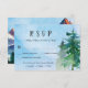 Mountain Wedding RSVP Card mit Dinner-Auswahl und Nummernteiler Option. Die Karte ist mit hohen Kiefernbäumen auf der rechten Seite der Karte mit einem blauen Himmel Aquarell-Hintergrund dekoriert. Auf der Rückseite der Karte befindet sich eine wunderschöne Gebirgslandschaft mit Wasser und einem Kiefernwald im Vordergrund. Diese rustikale Bergantwort-Karte passt zu einer Sammlung in meinem Laden.