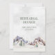 A rustic invitation for your winter wedding rehearsal dinner with a snow covered mountain and soft watercolor patterns.