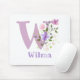 Das Design bietet Monogram & Name mit Blume beiderseits in einem pastellfarbenen Aquarell-Stil. Beispielname ist Wilma. Kann für jeden sein, der einen Namen hat, der mit W beginnt.