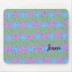 Mauspad mit blauen Sternen, grünen Wirbel, auf einem lila Hintergrund. Der Name auf dem Pad kann geändert werden.
