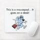 Ein mousepad, das dieses sagt, ist ein mousepad… Es geht auf einen Schreibtisch! und hat ein Bild einer Maus, die geht zu arbeiten