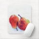 Farbige Bleistift-Abbildung von zwei knotigen, falsch geformten roten Birnen.Perfekte. Köstlich. Für diejenigen, die Obst Liebe.