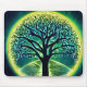 Glühender Baum mit einem beleuchteten Pfad dahinter. Erstellt mit KI-Software.