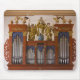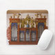 Der Organfall in der Kirche von Saalkirche in Ingelheim, Deutschland, hat einen Aufstand der spielerischen Engel, die Instrumente auf die Oberseite tanzen und spielen. Ein eher eleganterer Tropfen der blauen hölzernen Latten und der Rahmen eines Braun-Holzetuis die Rohre unten. Es macht ein herrliches mousepad für Organisten.