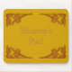 Jede Ecke ist mit einer schwarzen Holzbrackets geschmückt. Die braunen Klammern zeigen drei verschiedene Größen von Blätter, die mit einem rechten Winkel verbunden sind. Personalisieren Sie Text in der Mitte, der standardmäßig auf "Sharon's Pad" steht
