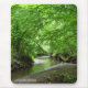Foto eines üppig grünen Waldes, Bäume und eines Baches, gedruckt auf einem Mousepad.