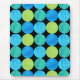 Ein lebendiges Mousepad mit einem abstrakten "Blue Moons"-Muster in heller Blues und Neon-Grün auf schwarzem Hintergrund; von Judy Adamson, einem handbemalten Collage-Design.