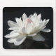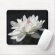 Nah aus einer schönen weißen Wasserlilie auf einem Mauspad mit schwarzem Hintergrund.