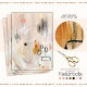 Un imaginaire d'art abstrait neutre aux tons beige, corail, noir, gris et jaune chaud fait de médias mixtes.