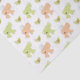 Papier de tissu sur le thème du bébé, en blanc, avec de mignons éléphants de dessins animés en vert et pêche, avec des pois colorés et des feuilles de noix de coco sur le arrière - plan.