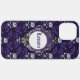 Silber graue Schädel mit einem Rebdesign sind in dunklen, lila Rose auf dieser fabelhaften Goth-Handy-Hülle eingebettet. Personalisieren Sie mit Ihrem Namen in einem lila und grauen gotischen Rahmen.