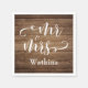"Mr. and Mrs." Elegante weiße Schrift über Rustika Serviette