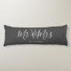 Überraschen Sie ein Paar mit diesem Mr. und Mrs. Gray White Script Custom Monogram Body Kissen. Es ist modern, beiderseits mit dunkelgrauem Hintergrund gestaltet. Das Zentrum hat einen großen hellgrauen Monogramm-Buchstaben und der Text ist "mr und mrs" in weißer, trendiger Schrift. Das festgelegte Datum liegt unter den Namen. Eine perfekte und einzigartige Geschenkidee für Neuvermählte! Klicken Sie auf Vorlage personalisieren und folgen Sie den Anweisungen.