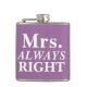 Einfach und niedlich, anpassbar Frau IMMER Right Bride's Flask.
