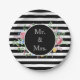 Mr & Mrs Black and White Striped Blume Classic Pappteller