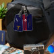 Grafik eines weißen Flugzeugs mit gerader Punktlinie ( Flugbahn ). Sie können das "Anpassen"-Tool verwenden, wenn Sie gewollt haben, die blaue Hintergrundfarbe zu ändern. Ein schönes Design zum Thema Reisen für Paare
