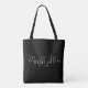 Diese elegante, schwarz-weiße Totttasche mit moderner Typografie kann mit Ihrem Namen und einem besonderen Datum personalisiert werden. Entwickelt von Thisisnotme©