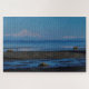Mt. Baker. Ein originelles Werk, das den Mt. Baker darstellt, wie man es von Maple Beach in Point Roberts, Washington sieht. Der schneebedeckte Berg Baker ist über das flache Wasser der Bucht von Boundary zu sehen. Ein blauer Held sucht die Flut.