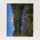 Ein wunderschönes Foto des Berges Hood, das sich im Mirror Lake mit rosa Wildblumen im Vordergrund widerspiegelt.