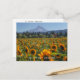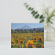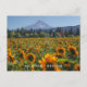 Auf dieser Postkarte befindet sich ein Sonnenblumenfeld mit majestätischem Mt Hood im Hintergrund.