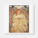 Ein Vintages Mucha-Poster aus dem Jahr 1890. Alphonse Mucha ist der bekannteste Jugendstil-Künstler seiner Zeit. Dieses Design zeigt eine Frau mit rotem Kopf, die ohne Text sitzt. Das Design hat einen leicht bedrückten Look.