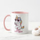 Très sympa, ma fille a adoré. Le modèle est existant. Je n'ai rien ajouté. J'espère que le texte résistera au lave-vaisselle.