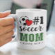 Tasse à café pour une maman de football avec un design de typographie charmant avec un coeur rouge et MOM écrit en lettres vertes. Ajouter l'année établie. Tasse à café pour la mère de football numéro un personnalisée avec l'année où elle est devenue une mère de football. Montrez votre statut de mère de football avec cette tasse de café amusante et élégante! Cette tasse contient le texte "Numéro Un Soccer Maman depuis [Année]" dans une police de caractères gras, ce qui en fait la meilleure façon de montrer votre soutien à votre jeune athlète favori.