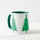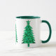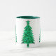 Mug dans une silhouette classique d'un sapin de Noël en vert de pin foncé / à feuillage persistant, modelé avec des flocons de neige géométriques en vert pastel, aqua et bleu glace