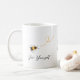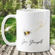 Cette tasse à café est décorée avec des abeilles au miel aquarelle et "Abee Yourself" dans une typographie stylisée. Facilement personnalisable avec votre monogramme. Aquarelle originale © Michele Davies.