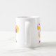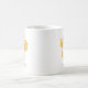 Une tasse à l'image douce d'une abeille rayée rose et blanche. Un morceau de nid d'abeille jaune derrière. Une lettre scellée avec un coeur et un groupe de coeurs flottants font également partie du design.