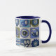 A vibrant set of ceramic tiles featuring abstract representations of birds and flowers, with bold blue, green, and white color patterns. The designs are characterized by geometric shapes and playful lines, creating a modern and artistic visual appeal.
