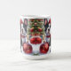 Le mignon chiot de boston terrier portant un arc rouge dans un décor de Noël gai avec des ornements, des cadeaux et un arrière - plan enneigé. Une scène pleine de chaleur et d'amour pour la fête et la compagnie.