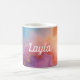 Une belle texture d'agate en jaune, rose et bleu, avec des veines dorées scintillantes crée une tasse riche et luxueuse.