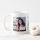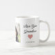 Cette tasse élégante dit "Aimez-vous grand-mère" dans un script noir tendance, écrit à la main avec un coeur, en bas de l'élément du coeur, vous pouvez repérer le nom de son petit-enfant, et vous pouvez le customiser. Ce script personnalisé unique en son genre avec deux photos et une tasse de coeur est une excellente façon de montrer à votre grand-mère combien vous vous souciez. Le cadeau parfait pour la fête de la grand-mère. Il y a également de la place pour montrer deux de vos photos personnelles préférées.
