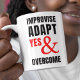Élégant IMPROV mug chrétien avec le libellé qui dit IMPROVISE ADAPT OUI & SURCOME qui est une combinaison d'une phrase de motivation populaire et le "Oui et" qui est la règle principale de l'amélioration. Un cadeau de motivation idéal pour les gens qui aiment aussi le théâtre improvisé ou qui sont comédiens stand-up. Le design comporte une typographie noir et rouge gras. Au milieu, il y a un TEXTE CHRÉTIEN PERSONNALISABLE basé sur Philippiens 4:13 qui s'intègre bien avec cette citation inspirante. Vous pouvez PERSONNALISER ce texte avec votre texte préféré, par exemple nom, hommage, message drôle. Des cadeaux assortis sont également disponibles.