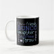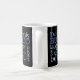 Tasse de café parfaite pour vos joueurs préférés de Bunco. Thème noir, bleu et pourpre moderne de couleur. Texte de style de souterrain de typographie : matrices, amis, Bunco, rire, petit pain, bonnes périodes, jet et conversation.