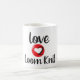 tasse à utiliser lorsque vous êtes assis et le Tricot Loom. "Love 2 Loom Knit" grandes lettres noires et rouges avec un coeur et le numéro 2